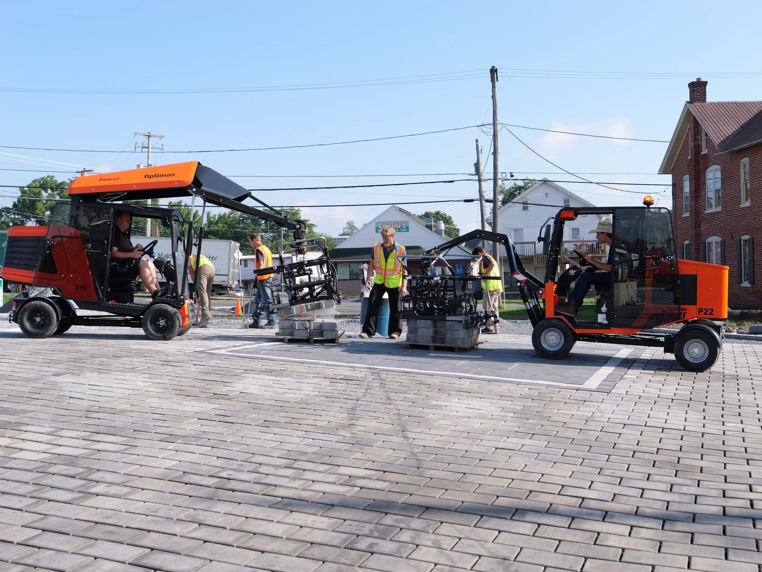 As a sub contractor I will install pavers with a mechanical head, and excavator. I provide very quick installation with much less labor cost, and helping to elevate worker strain.